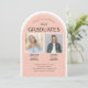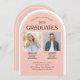 Cette invitation à la fin de l'obtention du diplôme en haut de gamme orange pâle et classe présente un design spécifique pour deux diplômés. L'invitation est parfait pour frère et soeur, jumeaux ou amis. Le côté arrière offre de l'espace pour une photo horizontale supplémentaire et du texte supplémentaire.