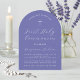 Une première invitation à la communion simple, moderne, en forme d'arc, neutre du genre. Il n'a que du texte blanc sur arrière - plan violet (violet). Dans la partie supérieure il y a une croix blanche avec du texte voûté au-dessus. L'occasion et le nom sont écrits en script.