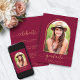 Moderne minimaliste Arc d'or Bourgogne Photo Graduation Party Faire-part Invitation avec votre photo et notre étonnante typographie chic boho et arche géométrique en marron chic bordeaux et or jaune safran. Parfait pour annoncer votre diplôme et votre fête ! Veuillez nous contacter à cedarandstring@gmail.com si vous avez besoin d'aide pour la conception ou les produits correspondants.