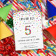Arc-en-ciel 5 ans anniversaire / 5ème anniversaire invitations de fête! Avec les détails de votre fête de garçon ou de fille de 5 ans et un "5" en confetti, avec des cercles amusants de confettis couleur arc-en-ciel qui saupoudrent du sommet de ces mignons invitations