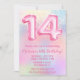 Invitation Anniversaire 14 ans Arc-en-ciel Rose Fille Invitation anniversaire rose pailleté pour une fille de 14 ans avec écriture moderne et ballons en foil amusants.