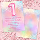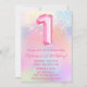 Pink Rainbow 1st Birthday Invitation Girly Pink Parties scintillant 1st anniversaire invitation pour une fille de 1 an avec écriture de script moderne et des ballons de papier amusant.