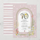 Rejoignez-nous pour une célébration fantaisiste des 70 ans de notre client ! Notre invitation botanique élégante présente un fond rose poussiéreux charmant parsemé de délicats points blancs. Ornée d'une arche aquarelle charmante, mettant en vedette des florales printanières et estivales vibrantes, et ornée de créatures sauvages délicieuses comme des papillons voltigeants et des coccinelles délicates. Personnalisez le modèle modifiable avec vos propres détails d'événement pour un effet personnalisé. Parfait pour nos amis jardiniers qui apprécient l'art de la poterie !