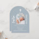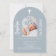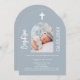 Invitation Arc photo bleu Dusty script Baptême