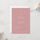 Cette élégante faire-part de mariage minimaliste moderne présente un monogramme propre et sophistiqué des initiales du couple en haut, suivi d'une typographie serif intemporelle pour les noms et les détails mariages sur un arrière - plan rose poussiéreux. L'avant est encadré de subtiles lignes géométriques, ajoutant une touche formelle au design. Sur le dos, une photo du couple heureux est placée en arc circulaire, avec un code QR personnalisable ci-dessous, ce qui permet aux clients de RSVP facilement. Essayez d'être vert avec cette invitation tout-en-un écologique moderne en coupant sur les RSVP supplémentaires et les cartes de détails. Ajoutez simplement votre propre code QR au verso de l'invitation pour que vos invités puissent accéder à RSVP et découvrez plus d'informations sur votre mariage. Customisez les noms et le libellé en quelques étapes simples, et personnalisez la carte d'invitation avec votre photo du couple heureux pour lui donner une touche unique et personnelle. Veuillez noter : les expressions "gentiment joignez-vous à nous pour célébrer le mariage de", "réception à suivre" et "gentiment répondre par" au verso, ainsi que les lignes et les éléments graphiques de l'illustration, ne peuvent pas être modifiés, supprimés, déplacés ou modifiés. Elles sont réparées. Si vous devez modifier la couleur, vous pouvez customiser la carte d'invitation. Vous pouvez facilement personnaliser cette invitation avec votre propre texte et la partager numériquement par texte, e-mail ou médias sociaux. Vous pouvez également envoyer une version imprimée à vos invités ou faire les deux : en envoyant une version numérique et en faisant un suivi avec une copie imprimée pour une expérience plus personnalisée.