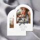 Célébrez votre jalon dans le style avec cette élégante invitation Sweet 16! L'avant présente votre photo dans une magnifique forme d'arc, créant une touche intemporelle et personnelle. Le titre Sweet sixteen est écrit dans la calligraphie de brosse moderne, ajoutant une ambiance chic et ludique. Ci-dessous, tous les détails de votre fête sont magnifiquement affichés. À l'arrière, ajoutez une photo en arc de plus avec vos informations RSVP. Cette invitation est la façon idéale de donner le ton pour une célébration inoubliable.