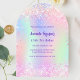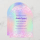 Pour un anniversaire féminin et féminin. Un arrière - plan holographique, rose violet, vert menthe, décoré de confettis, brille.Le nom est écrit avec un script de style manuel moderne de couleur violet. Personnalisez et ajoutez les détails de votre fête.