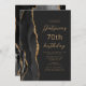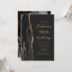 Le bord gauche de cette élégante invitation à la fête d'anniversaire moderne comporte une bordure en aquarelle noire ornée d'une fausse parties scintillant dorée. Le texte personnalisable combine un script de couleur or et des polices sans serif sur un arrière - plan noir en ardoise. L'envers est assorti d'un design d'agate noir et or.