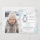 Invitation Argent Bleu Pingouin Hiver Onederland Anniversaire
