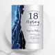Bleu marine et argent agate 18e anniversaire invitation de fête. Elégant design moderne avec aquarelle bleu royal agate marbre arrière - plan, faux parties scintillant argent et typographie script police. Carte invitation branchée parfaite pour une célébration anniversaire féminine élégante. Invitations Zazzle imprimées ou téléchargement instantané modèle imprimable numérique.