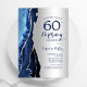 Invitation à la fête du 60e anniversaire en bleu et argent de la Marine. Elégant design moderne avec aquarelle bleu royal agate marbre arrière - plan, fausse parties scintillant or et typographie script police. Carte invitation branchée parfaite pour une célébration anniversaire féminine élégante. Invitations Zazzle imprimées ou téléchargement instantané modèle imprimable numérique.