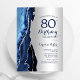 Invitation à la fête du 80e anniversaire en bleu et argent de la Marine. Elégant design moderne avec aquarelle bleu royal agate marbre arrière - plan, faux parties scintillant argent et typographie script police. Carte invitation branchée parfaite pour une célébration anniversaire féminine élégante. Invitations Zazzle imprimées ou téléchargement instantané modèle imprimable numérique.