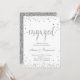 Invitation argentée de partie de fiançailles avec des confettis. Le minimaliste et le bonbon, cette invitation argentée rendront votre pièce de fiançailles plus mémorable.