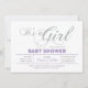 Célébrez une journée spéciale pour votre bien-aimé avec cette invitation baby shower moderne! Ce design présente une typographie simple mais élégante " It's a Girl " avec parties scintillant en argent. Ce design d'invitation baby shower est parfait pour une soirée à thème couleur argent et violet violet.