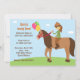 Invitez les amis de votre enfant à leur prochaine fête d'anniversaire avec cette invitation personnalisable de fête d'anniversaire de cavalier de horseback. Comporte une fille de brune montant un cheval avec des ballons de partie. Personnalisez avec vos détails de partie. ©JDDigiDesign de quelques éléments