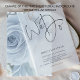 Arrière - plan teinté bleu bleu floral pour Vellum. Belles fleurs bleues et blanches pâles pour un bel arrière - plan pour une invitation vellum. Il y a une couche d'opacité sur le dessus des fleurs, de sorte que le texte sur l'invitation vellum se démarquera lorsque placé sur le dessus de la carte avec votre photo. Vous pouvez supprimer ce calque d'opacité si vous le souhaitez. Les choix pour les invitations en velours à placer sur le dessus de la carte avec cette illustration florale sont disponibles à acheter séparément dans cette collection. Remplacez l'exemple de photo au dos par votre préféré. Ajoutez votre code QR à votre site Web mariage au dos fait de cette option pratique pour vos invités à RSVP et voir tous les détails sans avoir besoin de RSVP séparé et de cartes de détails. Votre code QR sera généré automatiquement pour mettre à jour l'exemple de code dans la conception, lorsque vous changez simplement l'exemple d'URL dans le modèle avec votre propre URL de site mariage.