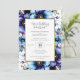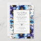 Elégante invitation de mariage avec un cadre blanc doré luxueux et étonnant arrière - plan floral bleu et violet aquarelle. La combinaison d'accents dorés chatoyants et de fleurs artistiques crée un look sophistiqué et intemporel, parfait pour des mariages formels, des célébrations modernes ou des événements romantiques. L'arrière - plan blanc garde le design frais et élégant, laissant éclater les fleurs bleues vives. Personnalisez facilement avec vos noms, date mariage, lieu et détails RSVP pour créer une première impression mémorable pour vos invités.