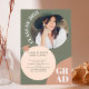 Faites le tour et fêtez ! Nos invitations de boho élégantes et modernes sont la meilleure façon d'annoncer votre graduation dans le style Avec une police audacieuse avec des formes rétro vert, brun et blush et des formes de cercle, ajoutez 5 de vos photos préférées. invitation votre invité à votre maison ouverte et annoncer votre graduation dans le style.