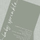 Calligraphie pivotée minimaliste Sage Baby shower Sprinkle. Disponible numériquement ou imprimé. Style contemporain avec Baby Sprinkle pivoté et à gauche et personnalisez facilement le reste du texte à vos propres détails. Vous pouvez modifier le texte et les couleurs arrière - plans si vous le souhaitez via l'option Modifier plus.