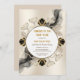 Ring in the New Year with vintage glam. This elegant black-and-gold design frames your details inside a circular panel surrounded by champagne coupe glasses, pearl garlands, Art Deco fans, soft watercolor smoke, and subtle gold flecks. Perfect for a chic countdown, cocktail soirée, or speakeasy-style house party.