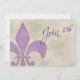 Le jazz vers le haut de votre partie de mardi gras de la Nouvelle-Orléans avec ces invitations originales comportant un symbole pourpre fané de Fleur de lis décoré de l'or de faux perle sur un arrière - plan sensible de pourpre, de vert et d'or lavés sur l'avant et le dos. JOIGNEZ LES USA est écrit sur l'avant dans une police artsy de manuscrit. Ajoutez votre information de partie utilisant le modèle. Cliquez sur la PERSONNALISER IL pour changer le placement de police et de textes sur le dos. Grand pour votre événement de mariage de la Nouvelle-Orléans !