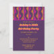 Qu'il s'agisse d'une soirée à thème disco, d'un anniversaire d'étape ou d'une autre occasion spéciale, donnez-lui une touche super avec ces invitations de fête sur mesure. Les détails de votre fête apparaissent en jaune gras contre un arrière - plan violet qui est accentué par un motif rétro amusant et funky en violet, rose magenta chaud, orange et jaune.