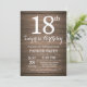 Invitation Rustic Surprise 18e anniversaire. Arrière - plan en bois rustique. Anniversaire Vintage de Retro. Anniversaire adulte. Hommes ou femmes Anniversaire Invitation. 13e 15e 16e 18e 20e 21e 30e 40e 50e 60e 70e 80e 90e 100e, n'importe quel âge.