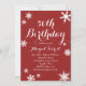 Une saupoudrée de flocons de neige décore cette invitation de fête du cinquantième anniversaire, sur un arrière - plan rouge canneberge. Si d'autres éléments de coordination sont nécessaires pour votre événement, contactez-nous à prettyfancyinvites@gmail.com avec votre demande.