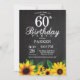 Invitation au 60e anniversaire du tournesol. Fleurs florales et Arrière - plan en damier. Country Vintage Retro. Les femmes, anniversaire. 12e 13e 15e 16e 18e 20e 21e 30e 40e 60e 70e 80e 90e 100e, tous âges. Numérique imprimable.