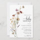 Invitation au Baby shower blanc floral. Cette invitation élégante et élégante au baby shower présente de magnifiques fleurs sauvages d'aquarelle peints à la main, disposés comme un joli bouquet et un élégant script de calligraphie, parfait pour les baby showers du printemps, de l'été ou de l'automne. Le dos comprend un motif lunatique de coordination. Recherchez les éléments correspondants dans la collection de Baby showers de Fleurs sauvages Boho blancs.