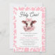 Baby shower de la vache rose - Une adorable invitation de Baby shower avec une vache ornée d'un arc rose et de fleurs. L'invitation est bordée de motif de vache rose. Tellement mignon et pays.