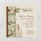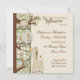 Beaucoup de points de plaid et de poka dans les tons verts entrent dans ce design. On y trouve un singe, une girafe, un oiseau, un éléphant et différentes tailles de feuilles en plaid. Nous avons ajouté des touches de bleu et d'orange pour compléter cette invitation amusante baby shower.