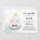 Pour la maman-to-be d'un petit hatchling, choisissez cette invitation baby shower moderne à thème pâques. Décoré d'un orné d'une adorable illustration d'oeuf souriant assis dans un nid avec une couronne sur la tête et une cravate d'arc violet. L'invitation comporte les phrases "We're egg-static", "Un petit est sur le point de écloser". Personnalisez avec vos détails de baby shower sous. À l'arrière de ces invitations se trouve un arrière - plan de pois blanc et menthe assorti. Idéal pour un baby shower garçon.