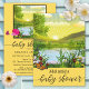 Une élégante invitation au baby shower neutre pour les hommes et les femmes avec une scène paysagère colorée et un soleil brillant. Un bel étang, des fleurs fraîches de printemps et un papillon ajoutent à cette atmosphère joyeuse. Les textes "Baby showers" sont des images de script séparées et peuvent être supprimés si vous préférez des textes personnalisés.