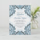 Une élégante invitation damassé-motif dans les tons bleus. <a href="https://www.freepik.com/free-photos-vectors/wedding">vecteur Mariage créé par freepik - www.freepik.com</a>). <br/>() La carte est facile à customiser avec votre libellé, police, couleur de police, options de forme de papier et choix de six types de papier.<br/>() Pas exactement ce que vous cherchez? Tous nos produits peuvent être conçus sur mesure pour répondre à vos besoins sans frais supplémentaires.<br/>() Il vous suffit de nous contacter à heartfelthelper@gmail.com. b) a) Coordonner les produits disponibles : Demande-nous !"