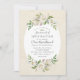 Invitations de baptême bébé personnalisées abordables avec une élégante bordure florale peinte en ivoire, vert et faux or. Personnalisez le modèle avec les détails de votre événement ou utilisez les outils de conception pour customiser le texte, choisir les couleurs arrière - plans et modifier les polices pour créer votre propre conception d'invitation unique. Le côté inverse comporte un joli arrière - plan vert sage ou utilisez l'espace pour ajouter du texte ou des photos supplémentaires si nécessaire. Ce magnifique design floral neutre est parfait pour toutes les saisons.