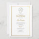 Croix avec blanc bouquet de rose invitation à baptiser