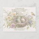 Un oiseau et un nid d'oiseau avec des œufs avec des fleurs printanières constituent l'arrière-plan de cette invitation.