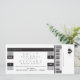 Customisez ce billet amusant et annonçons votre date mariage de manière audacieuse et unique ! Noir classique et blanc avec des accents de gris. Un mélange de fontes numériques pour une véritable impression de ticket de concert. Imprimez les détails supplémentaires sur le voyage, l'hébergement et/ou le RSVP sur le dos.