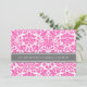 Invitations nuptiales au déjeuner dans d'élégantes couleurs fuchsia rose chaud, gris fusain foncé et blanc vintage classique damas floral, chic et féminin, personnalisable avec vos détails de douche. Également disponible en cartes de remerciement et invitations pour la fête de mariage.