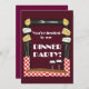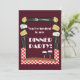 C'est une invitation à dîner mignonne avec un cadre de vin, de fromage et de fruits, ainsi qu'un tissu de table à damiers rouge. Le dos contient les détails de l'événement, ainsi qu'une citation, et peut être customisé.