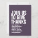 Avec une typographie blanche audacieuse, cet automne violet Thanksgiving dîner invitation est facilement customisé et donne le ton pour une fête amusante et décontractée de la dinde jour