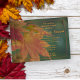 Invitez vos invités à votre fête prénuptiale de septembre, octobre ou novembre en l'honneur des mariés avec l'Invitation au dîner de répétition de mariage aux couleurs d'automne. Cette jolie invitation au dîner de répétition de mariage automnal présente une photographie de près peinte numériquement de feuilles d'érable coréen sur l'arbre dans des nuances d'orange, de rouge et de jaune avec un arrière-plan boisé vert flou.