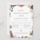 Cadre floral à l'aquarelle dans des nuances de rose blush et de pourpre prune, invitation au dîner de répétition. Conception de typographie chic et moderne. Le dos de la carte présente une couleur prune pourpre poussiéreuse muette solide.