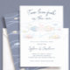 Célébrez la veille du grand jour avec cette charmante invitation au dîner de répétition « Deux poissons de moins dans la mer ». Ce doux design à l'aquarelle présente deux poissons adorables nageant l'un vers l'autre, entourés de douces vagues, de bulles et d'éléments marins pastel délicats. La palette de couleurs bleues apaisantes et le thème sous-marin fantaisiste créent une atmosphère légère et romantique parfaite pour une célébration de mariage sur la plage, nautique ou inspirée de l'océan. Personnalisez facilement le texte pour qu'il corresponde aux détails de votre dîner de répétition et créez une invitation-souvenir mémorable pour votre famille et vos amis.