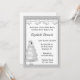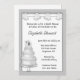 Invitation avec gâteau en argent garni de mariée et mariée, cadre en argent et cloches blanches au-dessus de la frontière. Présenté comme une invitation à la douche nuptiale, mais aussi parfait pour un anniversaire ou une fête de fiançailles.