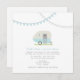 faire-part de mariage illustrant une remorque vintage bleue garée dans l'herbe. Le remorqueur possède une boîte de fenêtre remplie de marguerites et de vêtements aux yeux noirs. Bleu et grisé au sommet. Personnalisez le texte avec les détails de votre occasion. Recherchez les objets correspondants chez Jill's Paperie.