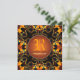 Fusion moderne et tribale - invitations élégantes à dîner avec des oranges sauvages, des marrons et des saupoudrées d'un bleu magnifique - monogramme et texte entièrement personnalisables pour les dîners de toutes les occasions