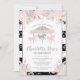 Belle invitation à l'anniversaire du carrousel floral aux glitteries roses et argentées, parfaite pour le premier anniversaire de votre petit