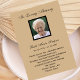 Cette adorable invitation de service commémoratif présente une photo de votre être aimé, coincé en noir. Les détails de l'invitation apparaissent sur un bel arrière - plan bronzé avec un élégant style noir. Il s'agit simplement d'une belle façon de rendre hommage à votre bien-aimé et aux invités invitations. Copyright sympathythankyou